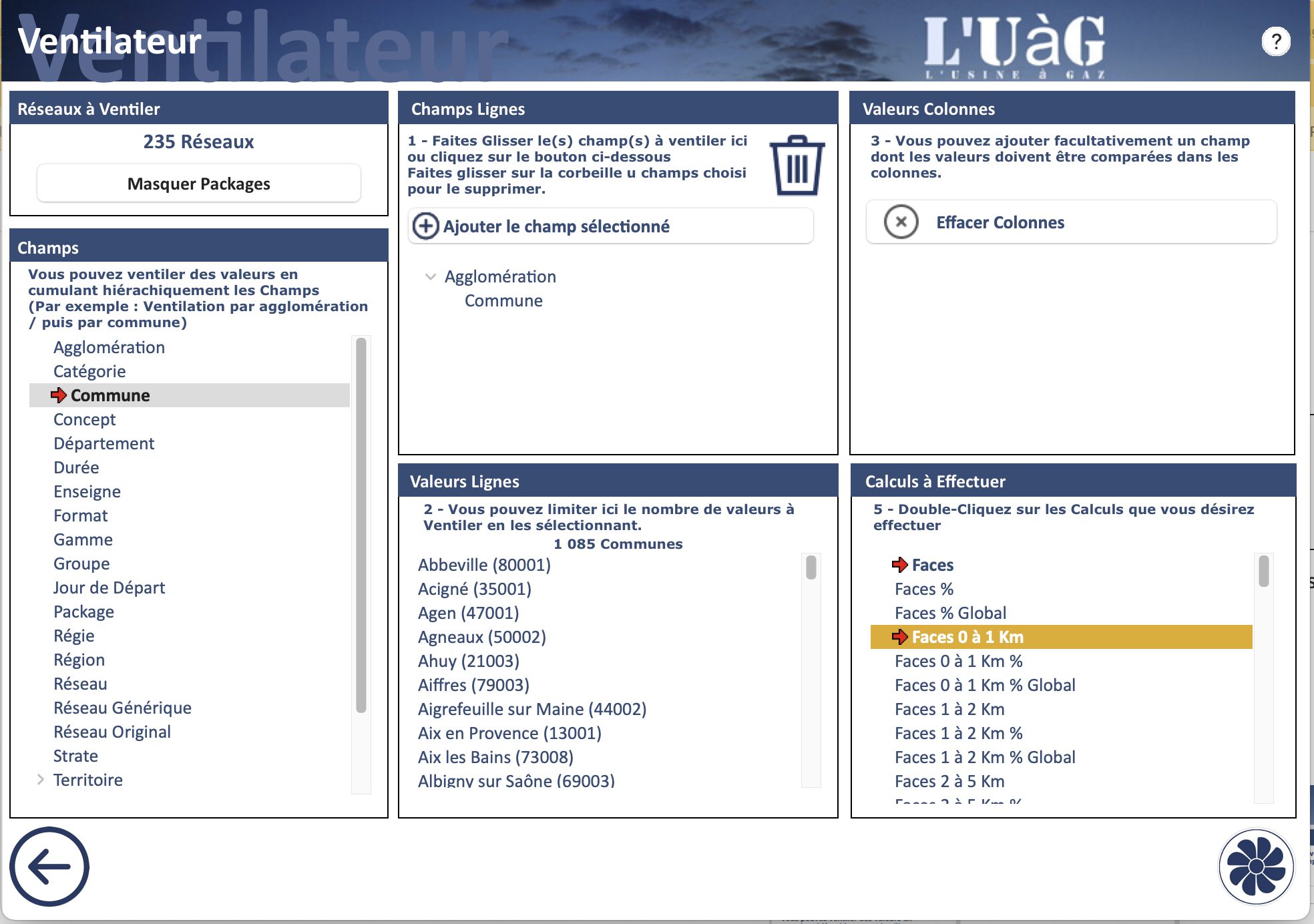 Dans le cas d’un montage de campagne, des informations affichées complémentaires relatives au territoire sont affichées (Nb de points de vente touchés, Distance des faces par rapport au plus proche, etc…)